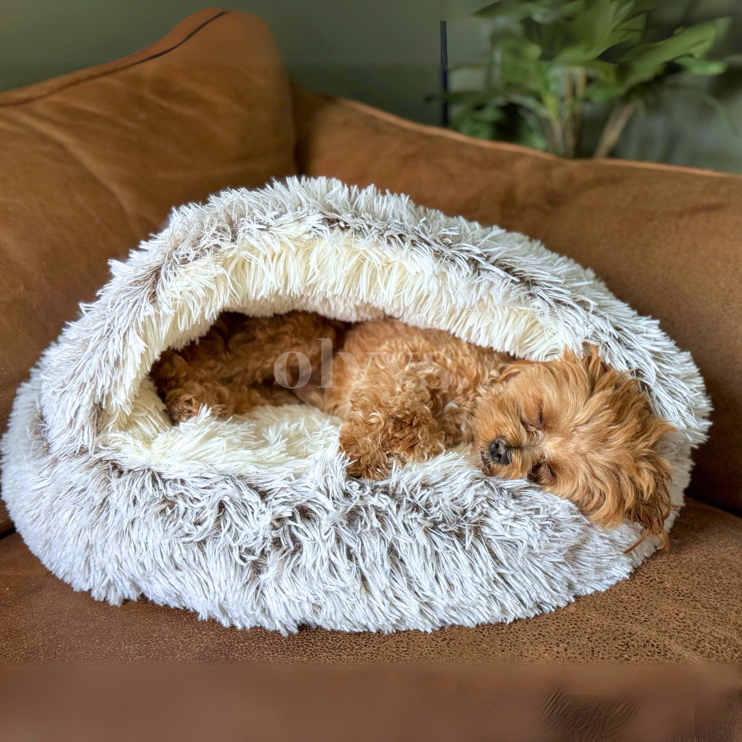 The Cozy Cocoon bed has been vet-approved for its unparalleled ability to offer security and comfort. Its unique hooded design, coupled with extra padding and a plush cover, creates a cozy space that feels just like home, evoking the warmth of a dog mother's loving embrace. This soothing design is especially helpful for dogs dealing with separation anxiety and stress.